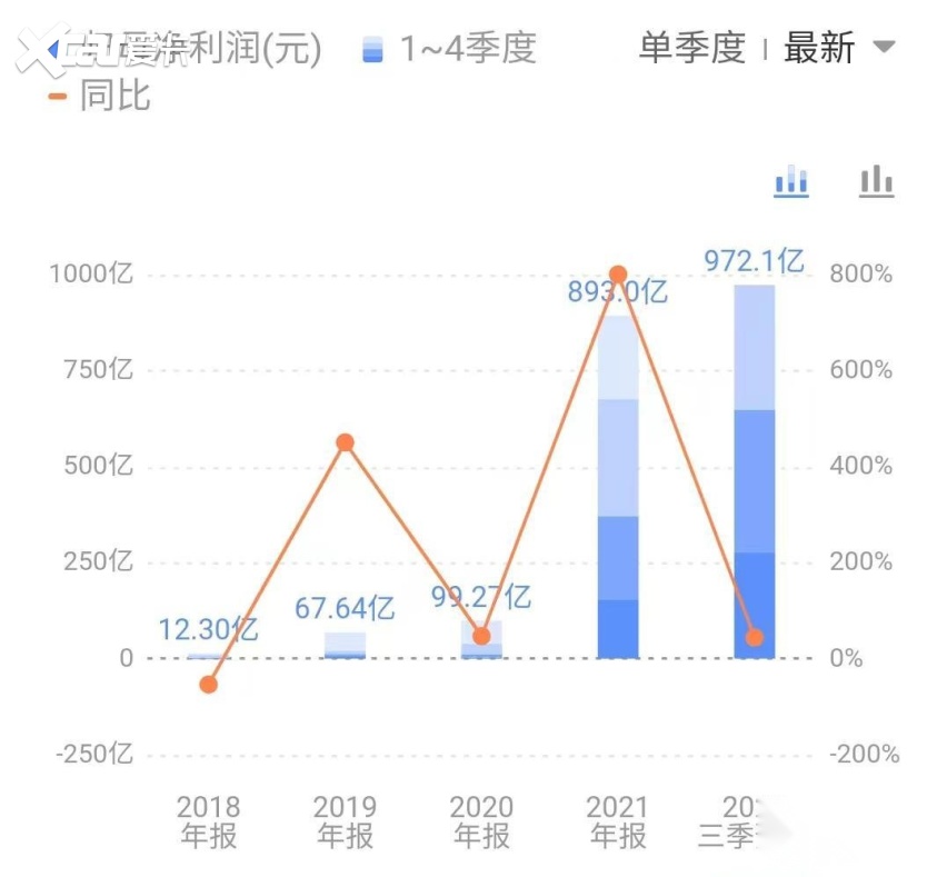 这里可以明确地告诉你,跑海运真的很赚钱。相信自进入疫情时代之后,大家也经常能够在一些新闻报道上,看到过关于海洋运输行业运力不足的新闻,而另外一部分的新闻,则都是海运价格大大上涨、海运公司“赚麻”了的消息。这么说吧,我们国内海洋运输的龙头老大——中远海控,2021年全年,中远海控净利润达到了892.96亿元,同比大增799.52%,创下历史最好业绩,至于今年前三季度的业绩,大家自己看图吧,简直就是印钞机一般的存在。